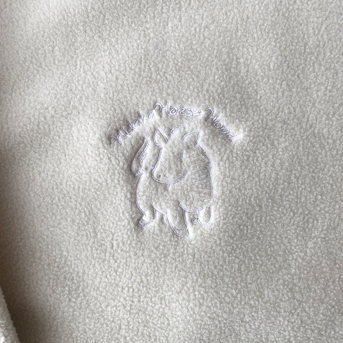 胸にはボディと同色で「HIDAKA HORSE HOOD」の刺繍がさり気なく施されています。