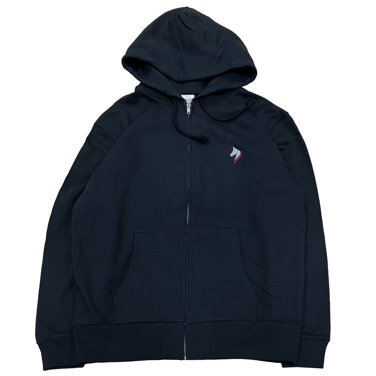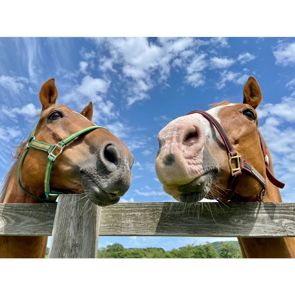 背中にはスズカフェニックス・オウケンブルースリが同じ放牧地で過ごす「新・仲良しツインズ」のイラストがプリントされ、胸元には浦河アエルのロゴマークが贅沢に刺繍されたジップ型のパーカーです。
